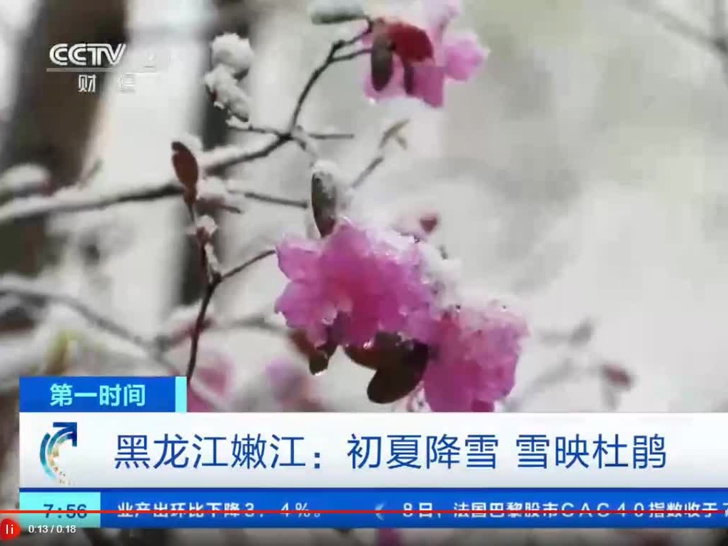 黑龍江嫩江:初夏降雪 雪映杜鵑
