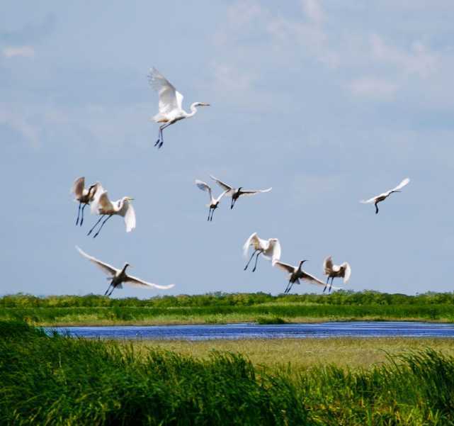 興凱湖濕地是國際重要濕地,與俄羅斯境內(nèi)濕地相連成一片,是世界最大的三塊濕地之一。濕地內(nèi)野生動植物資源極為豐富,有白尾海雕、長耳鸮、蒼鷺等世界重要候鳥285種,中國國家一級保護鳥類9種、二級保護鳥類41種。