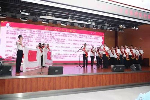 全體隊(duì)員面向隊(duì)旗進(jìn)行莊嚴(yán)宣誓,鄭重承諾將牢記援外醫(yī)療光榮使命,不辜負(fù)祖國(guó)人民重托,發(fā)揚(yáng)“不畏艱苦、甘于奉獻(xiàn)、救死扶傷、大愛無(wú)疆”的中國(guó)醫(yī)療隊(duì)精神,為增進(jìn)中國(guó)和受援國(guó)人民友誼、促進(jìn)世界和平做出積極貢獻(xiàn)。