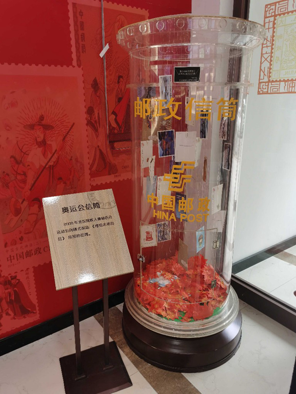一進(jìn)門右手邊,是一個(gè)透明的郵政信筒,它來自2008年北京殘奧會(huì)閉幕式,現(xiàn)場有很多人通過它投遞出了《寄給未來的信》。左右兩側(cè)的墻上,懸掛著中華文化郵品,用郵票的形式展示傳統(tǒng)文化,重陽節(jié)、梅蘭芳舞臺(tái)藝術(shù)、景德鎮(zhèn)瓷器等具有紀(jì)念意義的郵票都位列其中,這里是集郵愛好者的天堂。