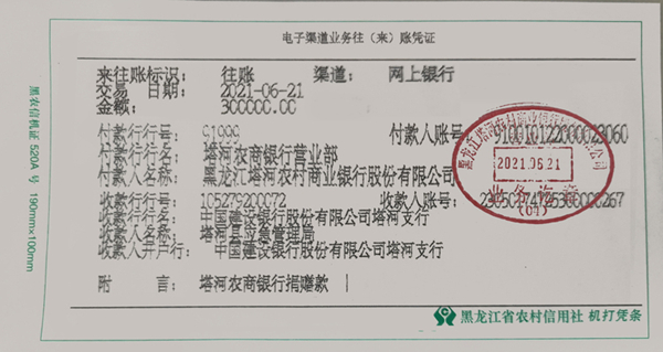 為更好地支持塔河縣應(yīng)對(duì)汛情,戰(zhàn)勝洪災(zāi), 6月21日,塔河農(nóng)商銀行在上級(jí)銀行的大力支持下,簡(jiǎn)化手續(xù),特事特辦,第一時(shí)間向塔河縣人民政府捐贈(zèng)救災(zāi)款項(xiàng)30萬(wàn)元,用于塔河縣抗洪救災(zāi)工作,奉獻(xiàn)了農(nóng)商銀行廣大干部職工的一份愛(ài)心。