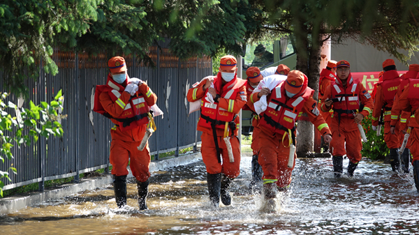 18日凌晨,記者在位于塔河鎮(zhèn)中央大街東端的塔河農(nóng)商銀行機(jī)關(guān)辦公樓前看到,漲勢(shì)很快的洪水正迅猛地漫過(guò)中央大街,向街邊的農(nóng)商銀行機(jī)關(guān)大樓、稅務(wù)局辦公樓和電視臺(tái)辦公樓等處涌來(lái),而這幾個(gè)沿街單位地勢(shì)較低,很容易受到洪水的侵襲。為盡量控制洪水水勢(shì),最大限度減少洪水造成的損失,塔河縣防指迅速調(diào)集人力物力,主要領(lǐng)導(dǎo)靠前指揮,廣大救援官兵奮勇?tīng)?zhēng)先,在幾個(gè)臨街單位外圍用沙袋圍壩攔堵,并調(diào)動(dòng)多臺(tái)高壓水泵抽水抗?jié)常o幾個(gè)單位的救援提供了極大地助力,也為其自救創(chuàng)造了更多的時(shí)機(jī)。