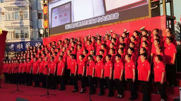 在歌聲中重溫百年歷程,追尋紅色記憶;在歌聲中砥礪無(wú)悔初心,汲取奮進(jìn)力量。塔河縣廣大職工群眾在縣新時(shí)代文明實(shí)踐廣場(chǎng)以大合唱的方式縱情高歌,用滿(mǎn)腔的熱忱唱出了對(duì)黨的熱愛(ài),對(duì)偉大祖國(guó)的贊美。由塔河縣森林之聲合唱團(tuán)表演的曲目《祖國(guó)頌》《我愛(ài)你中國(guó)》拉開(kāi)了演出的序幕,瞬間就調(diào)動(dòng)了人們的情緒,激發(fā)了人們的愛(ài)國(guó)豪情?!恫煌跣摹贰蹲呦驈?fù)興》《強(qiáng)軍戰(zhàn)歌》《忠誠(chéng)于黨》等一首首經(jīng)典曲目表達(dá)了塔河兒女對(duì)黨的忠誠(chéng)與熱愛(ài),展現(xiàn)了塔河人奮發(fā)有為、積極向上的良好精神風(fēng)貌。