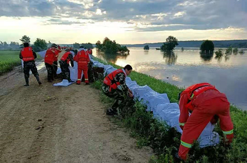 圍繞民生保障,辦急事、破難題。塔河林業(yè)局黨委始終堅持以人民為中心的發(fā)展理念,時刻把人民利益擺在至高無上地位。一方有難,八方支援,按照集團公司的要求部署,塔河林業(yè)局出動人員440余人,各類車輛和機械43臺,轉戰(zhàn)塔河縣開庫康鄉(xiāng)、依西肯鄉(xiāng)、呼瑪縣鷗浦鄉(xiāng),面對復雜嚴峻的汛情洪澇形勢,林業(yè)局帶隊領導迅速做出決策部署,組建防汛救災指揮部,集結“黨員先鋒隊”。全體黨員不畏艱險、率先垂范、靠前作戰(zhàn);全體防汛救災隊員不懼洪水,不畏高溫,逆水而行,裝卸沙袋、加筑江堤、封堵管涌,經(jīng)過8個晝夜的連續(xù)奮戰(zhàn),林業(yè)局防汛救災隊安全、圓滿地完成了防汛救災各項任務,以實際行動詮釋了“救民于水火、助民于危難”的使命擔當。