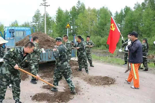 圍繞突出問題,辦好事、解民需。塔河林業(yè)局各基層單位在為民辦好事上下功夫,千方百計解決職工群眾關注的堵點、焦點問題,切實把黨史學習成效轉化為解民需的強大動力。防火辦黨委組織黨員干部組成行動黨小組深入到受汛情影響較為嚴重的居民群眾家中清理積水、立院墻和板杖子、搬運煤塊等勞動,切實解決了群眾水淹后帶來的生活實際問題;瓦拉干林場黨委積極響應“一團五盟”號召,協(xié)調瓦拉干派出所,聯(lián)合開展了“林地融合辦實事,修繕公路暖民心” 黨建聯(lián)盟主題活動,林場、鎮(zhèn)政府、派出所共有100余名職工參與,林場出動裝載機、運土車各一輛,運送填坑土料40余立方米,將長達3.5公里的坑洼路面及時進行了修繕,著力解決職工居民出行難問題,確保進場公路安全暢通。