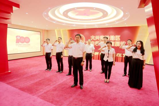 在地區(qū)黨史學(xué)習(xí)教育展館,面對鮮紅的黨旗,由區(qū)委書記王顯志領(lǐng)誓,區(qū)委理論學(xué)習(xí)中心組成員集體宣誓,重溫入黨誓詞,砥礪前進初心,勇?lián)氊?zé)使命。