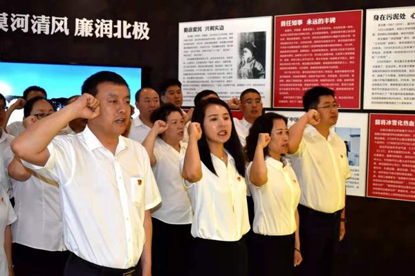 在漠河市廉政教育基地,塔河林業(yè)局研學(xué)交流團(tuán)成員在講解員生動(dòng)的講解下,依次參觀了“以古鑒今 廉潔中華”、“正風(fēng)肅紀(jì) 馳而不息”、“前車之鑒 警鐘常鳴”、“清正為民 廉潔風(fēng)范”四個(gè)篇章。通過一個(gè)個(gè)觸目驚心的腐敗案例、一幅幅發(fā)人深省的圖片和當(dāng)事人的懺悔實(shí)況錄像,對現(xiàn)場每一個(gè)人給以強(qiáng)烈的心靈震撼,進(jìn)一步提高了大家對反腐倡廉重大意義的認(rèn)識(shí)和感悟,筑牢防腐拒變思想防線。在深受警示教育的同時(shí),研學(xué)交流團(tuán)全體黨員干部高舉右拳,面對黨旗莊嚴(yán)宣誓,重溫入黨誓詞,并在“廉潔宣誓化于心,廉潔承諾重于行”橫幅上鄭重簽下自己的名字,表達(dá)了一定要樹牢不忘初心、勇?lián)姑?、廉潔從政的信念和決心。