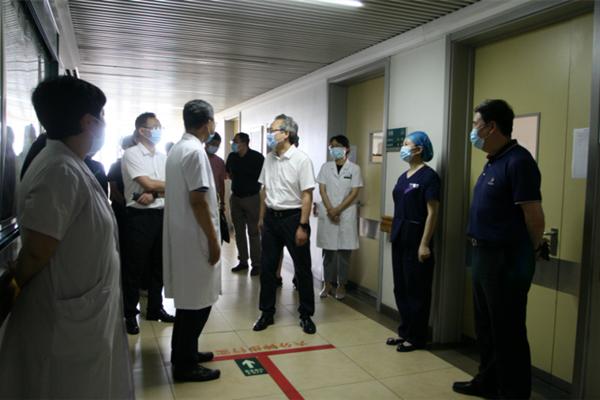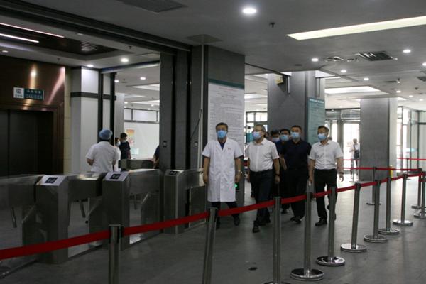 趙煒明一行先后到附屬第一醫(yī)院門診預(yù)檢分診處、呼吸科門診、耳鼻咽喉科門診、心血管病一科病房等處進(jìn)行實(shí)地檢查,并聽取附屬第一醫(yī)院黨委書記李建民關(guān)于院感防控工作的詳細(xì)匯報(bào)。