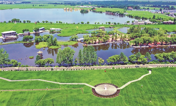 隱藏在綠水田中的大慶市林甸縣四合鄉(xiāng)聯(lián)合村,是一幅移步換景的畫卷,廣闊無垠的草原,鮮花、野草點(diǎn)綴其間,繪就出這里獨(dú)具個(gè)性魅力的濕地原生態(tài)景觀。采摘、騎車、釣魚,或閉上眼睛靜聽四周的鳥鳴聲、田邊的流水聲以及青禾的搖曳聲,放松又解壓。
