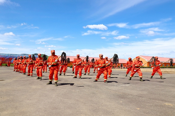 圖為阿木爾林業(yè)局“森防鐵軍”訓練防火二號工具分解動作