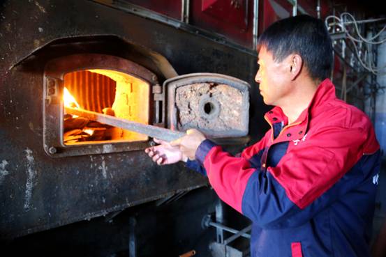 一大早,在呼中區(qū)房產(chǎn)維修與供暖中心鍋爐房內(nèi),一派忙碌的景象,上煤間里傳送帶上的煤炭奔向鍋爐,工人們將引火柴投入到爐膛內(nèi),熊熊熱浪迎面撲來。