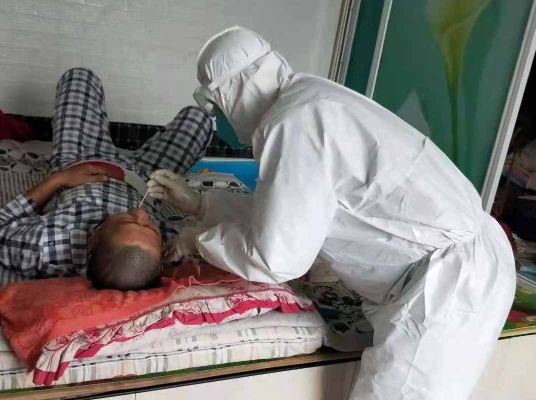 徐晶、劉建新、李也,三人來(lái)自醫(yī)院不同的科室,但是這次她們有了共同的目的,組成了一個(gè)三人核酸采集小分隊(duì),在后山鄉(xiāng)各個(gè)鄉(xiāng)道進(jìn)村采集核酸,汽車過(guò)不去,徐晶告訴村民我們可以步行進(jìn)村,但是路程還是有些偏遠(yuǎn),步行時(shí)間慢,樸實(shí)的村民開來(lái)自家的農(nóng)用三輪車,拉著她們仨進(jìn)了村。在當(dāng)?shù)卮迕竦娜ε浜舷拢朔浅D醯貫榇蠹壹皶r(shí)采集了核酸,經(jīng)過(guò)8個(gè)小時(shí)的奮戰(zhàn),三人沒(méi)有一人喊苦喊累,不吃不喝,不去衛(wèi)生間,共同完成了755人的核酸采集工作。據(jù)了解,省醫(yī)院十一病區(qū)護(hù)士徐晶去年還參加過(guò)援鄂醫(yī)療隊(duì),她愛(ài)人也在省醫(yī)院工作,倆人同為醫(yī)務(wù)工作者,也同為黨員,此次抗疫同時(shí)選擇了舍小家、顧大家,把年幼的孩子留給老人,共同走向了抗疫戰(zhàn)場(chǎng)。