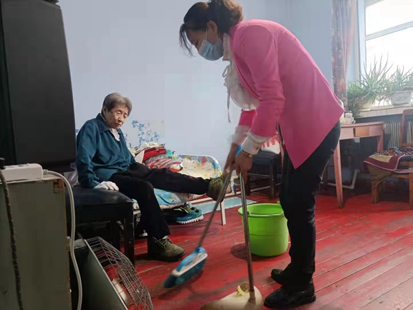 2015年,馮玉新在參加一次志愿服務(wù)活動(dòng)中得知,綠水林場(chǎng)退休臺(tái)屬老干部何立文,老伴去世,兒女常年在外地工作,老人生活不能自理。馮玉新非常惦記老人家,便主動(dòng)留下了老人的電話號(hào)碼,并告知老人無(wú)論有任何困難都可以隨時(shí)打電話找她幫忙。就這樣,在幾年的時(shí)間里,只要何立文老人有事情找她幫忙,她都會(huì)爭(zhēng)取第一時(shí)間趕到,幫助老人解決問(wèn)題。平日里,老人家里缺東少西,她就利用業(yè)余時(shí)間幫著買(mǎi)回去,每逢節(jié)日,她還會(huì)帶著慰問(wèn)品去看望老人,幫助老人打掃衛(wèi)生,陪老人嘮家常等。