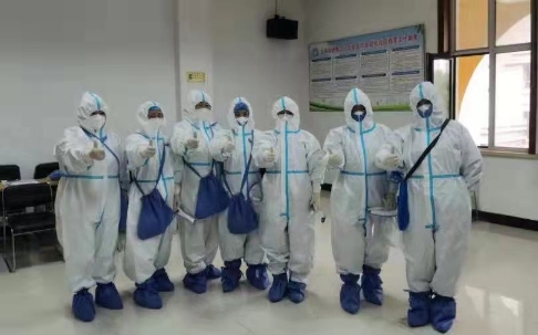 自2020年1月感染內(nèi)科全體醫(yī)護(hù)承擔(dān)起發(fā)熱門診此項(xiàng)艱巨任務(wù),一樓設(shè)立為發(fā)熱門診留觀室,二樓為核酸未出結(jié)果者緩沖病房,三樓、四樓為核酸陰性但尚未解除隔離的留觀病房。此次根據(jù)疫情防控要求,在原本樓層多,醫(yī)護(hù)工作“戰(zhàn)線”長的情況下,還特別設(shè)立了“巴彥”疫區(qū)專屬樓層。來自風(fēng)險(xiǎn)區(qū)患者就診時(shí),在隔離區(qū)的一名醫(yī)生和一名護(hù)士每個(gè)班次經(jīng)常工作6-8小時(shí),樓上樓下的反復(fù)奔走,裹著密不透氣的防護(hù)服,汗水濕透衣背。長時(shí)間的不能喝水吃飯如廁,挑戰(zhàn)人體生理忍耐極限,但從未有人叫苦委屈。白班的同志在結(jié)束日間工作后,為了解決科室人員少,且工作量大的情況,主動(dòng)留下加班到很晚,而第二天還要支援社區(qū)全員核酸采集任務(wù)。