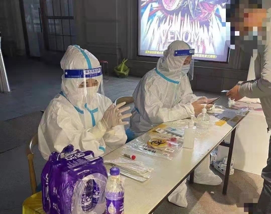 在做好發(fā)熱門診本職工作的同時(shí),護(hù)理團(tuán)隊(duì)還全力支援社區(qū)全員采集核酸任務(wù)。有的同志在忙碌了一夜夜班后,連家都沒回,又立刻投身到核酸采樣任務(wù)中。時(shí)間緊任務(wù)重,經(jīng)常早上4、5點(diǎn)鐘就要出發(fā)集合去采樣地點(diǎn),直到晚10點(diǎn)左右才結(jié)束工作。采樣地點(diǎn)多在室外,氣溫低,更是放棄了吃飯休息的時(shí)間,爭分奪秒地為一個(gè)又一個(gè)居民采樣。長達(dá)十幾個(gè)小時(shí)的高壓工作,導(dǎo)致肩頸、手腕損傷,但就算這樣,也從未有人下“戰(zhàn)場”。