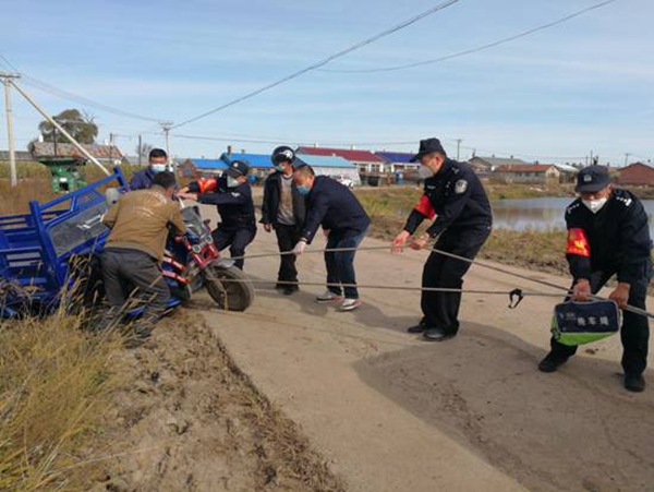 巴彥縣出現(xiàn)疫情后,哈爾濱市公安局航運分局副局長井立軍帶領(lǐng)41名來自航運分局、地鐵分局、禁毒支隊的戰(zhàn)友們,在巴彥農(nóng)村疫情災(zāi)區(qū)走鄉(xiāng)鎮(zhèn)進(jìn)村屯、查卡點看秋收,用頑強(qiáng)的意志、過硬的膽識,漂亮地打贏了一場巴彥農(nóng)村疫情防控阻擊戰(zhàn)。截至目前,哈爾濱市公安局駐巴彥農(nóng)村防疫工作組共協(xié)助維護(hù)核酸檢測點秩序3028處、檢查村屯卡點2015處、整改存在管理問題村屯卡點103處、整改存在安全隱患居家隔離點437戶,勸阻私自出門秋收等人員862人,監(jiān)督處置有害垃圾、病死牲畜等事件33起,為全面阻斷巴彥農(nóng)村疫情蔓延奠定了堅實基礎(chǔ)。