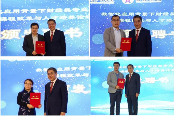 陳西峰為山東財(cái)經(jīng)大學(xué)會(huì)計(jì)學(xué)院院長(zhǎng)王愛國(guó)教授、華僑大學(xué)工商管理學(xué)院博士生導(dǎo)師楊洪濤教授、哈爾濱工程大學(xué)經(jīng)濟(jì)管理學(xué)院博士生導(dǎo)師楊忠海教授頒發(fā)客座教授聘書,為財(cái)智未來(lái)(北京)教育科技有限公司總監(jiān)聶鑫、中聯(lián)集團(tuán)教育科技有限公司產(chǎn)教融合事業(yè)部總監(jiān)侯劉成頒發(fā)企業(yè)導(dǎo)師聘書。