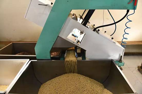 圖為新林林業(yè)局塔源林場堰松籽加工,進(jìn)入色選階段,此工序主要用于籽仁品質(zhì)等級分類(董淑玲/攝)