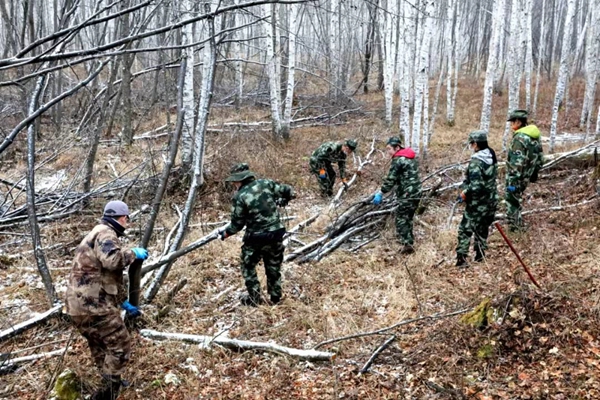 塔河林業(yè)局組織機(jī)關(guān)科室400余名黨員干部開展森林撫育工作,助力企業(yè)增效、職工增收(段明琦/攝)