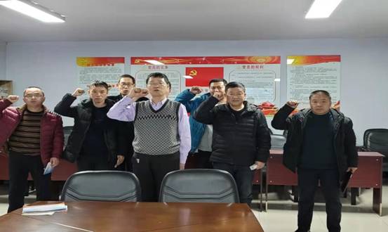 在中國共產(chǎn)黨入黨誓詞展示墻前,黨員干部們面向黨旗,高舉右手,重溫了入黨誓詞,我志愿加入中國共產(chǎn)黨,擁護(hù)黨的綱領(lǐng)......隨時準(zhǔn)備為黨和人民犧牲一切,永不叛黨。回憶入黨過程加固不忘初心、牢記使命,永葆共產(chǎn)黨員政治本色的堅定政治信念。