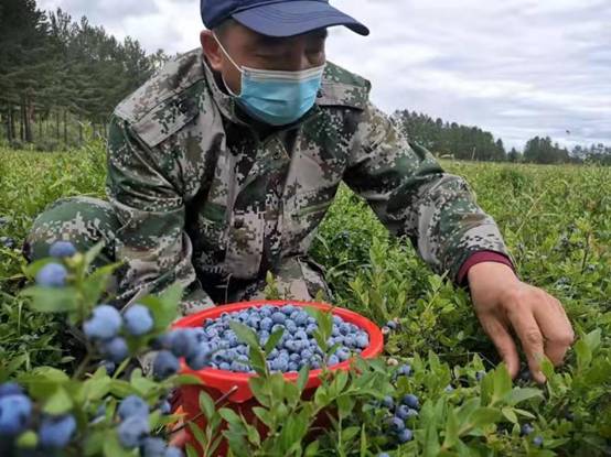 八月份野生藍(lán)莓進(jìn)入成熟期,職工在采摘野生藍(lán)莓果(崔紅霞 攝)