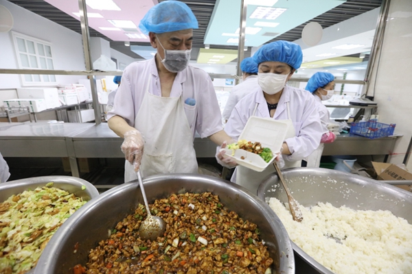 消化內(nèi)科16個月大的患兒浩浩是過敏體質(zhì),因發(fā)熱、腹瀉、進食后嘔吐住院治療,這個孩子既往過敏原檢查對大米、西紅柿、雞蛋等多種食物過敏,所以食堂針對這個孩子飲食單獨配餐,主食以小麥類饅頭等為主,蔬菜以在家經(jīng)常食用的菜類制作,保證患兒的營養(yǎng)進食。據(jù)了解,哈爾濱醫(yī)科大學(xué)附屬哈爾濱兒童醫(yī)院全力保障300多名住院患兒以及陪護家屬的一日三餐飲食。每天患兒家長通過住院患者訂餐系統(tǒng)平臺網(wǎng)上自助訂餐,食堂配餐送到病房。鞠樹斌介紹,食堂每天負責(zé)醫(yī)院職工和患者及陪護家屬800多人次的一日三餐,在崗的25名工作人員,每天從3時開始準(zhǔn)備早餐,8時制作午餐,14時又開始做晚餐。工作雖然忙碌,但卻覺得自己的努力能讓患者們在住院期間吃得安心、舒心,又覺得自己價值感滿滿。