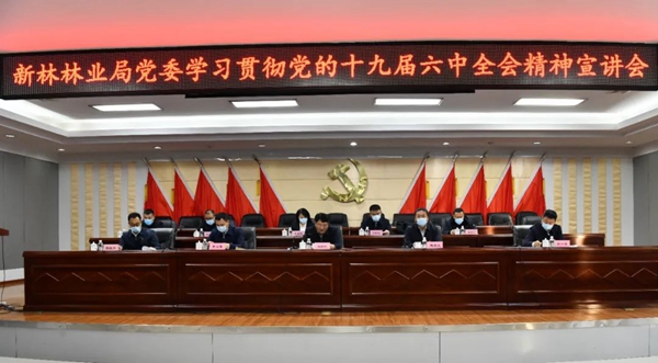 組織部署先行,推動全局貫徹“一盤棋”。新林林業(yè)局黨委第一時間召開部署會議,研究貫徹落實措施,召開理論學(xué)習(xí)中心組(擴大)會議,學(xué)習(xí)《中國共產(chǎn)黨第十九屆中央委員會第六次全體會議公報》精神,并集體收看黨的十九屆六中全會新聞發(fā)布會。印發(fā)《新林林業(yè)局黨的十九屆六中全會精神學(xué)習(xí)宣傳工作實施方案》《新林林業(yè)局學(xué)習(xí)貫徹黨的十九屆六中全會精神宣教工作方案》等文件,要求各單位科學(xué)組織,通過線上與線下、自學(xué)與集中學(xué)相結(jié)合等多種方式,開展學(xué)習(xí)研討,不斷提高政治站位;各基層單位積極行動,精心安排部署,結(jié)合單位實際,立足“學(xué)懂、弄通、做實”的要求,通過“讀書班”、“三會一課”、“主題黨日”、集中研討等形式,切實把學(xué)習(xí)成效轉(zhuǎn)化為工作動力,推動各項工作部署落地見效。截至目前,全局開展集中學(xué)習(xí)