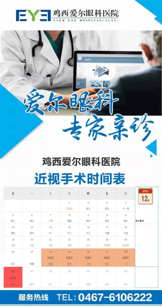 雞西愛(ài)爾眼科醫(yī)院近視手術(shù)時(shí)間表: