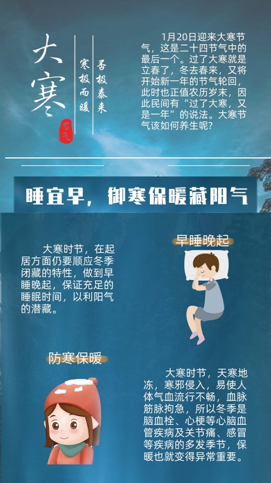 大寒節(jié)氣如何養(yǎng)生?睡宜早、食宜溫、動宜慢