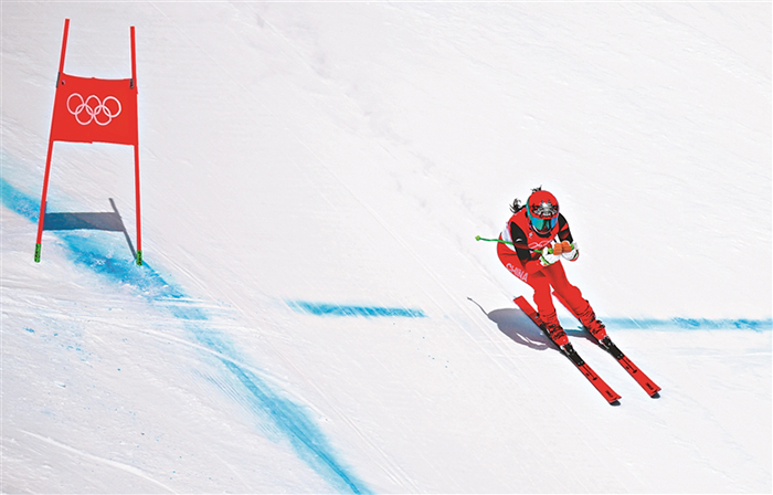 15日,在北京冬奧會高山滑雪女子滑降比賽中,中國選手孔凡影以1分44秒53順利完成了自己第一次冬奧會競速項目女子滑降比賽,名列第31名。順利完賽的一瞬間,孔凡影在頭頂比了一個愛心,還豎起大拇指激勵自己。