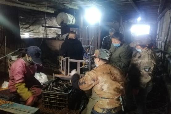 新林林業(yè)局塔源林場(chǎng)黨員志愿者幫助黑木耳養(yǎng)殖戶做菌上料(董淑玲 攝)