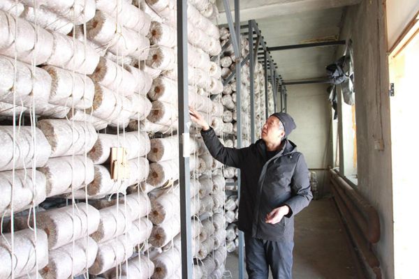 靈芝養(yǎng)殖戶在菌包培養(yǎng)室內(nèi)查看培養(yǎng)室的溫度、濕度是否適宜靈芝生長(趙明 攝)