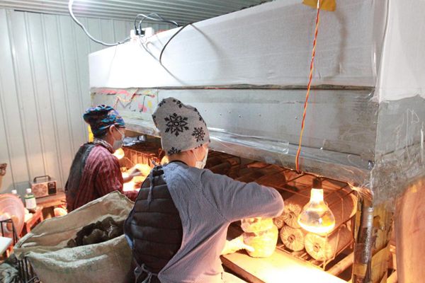 圖強(qiáng)林業(yè)局靈芝種植園內(nèi),技術(shù)人員在進(jìn)行靈芝菌包注菌(趙明 攝)