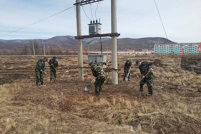 塔源林場組織專業(yè)隊隊員清理電力設(shè)施下方雜物,排除火險隱患(孫秀艷 攝)