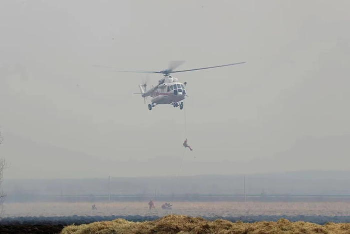 上午11時(shí)許,演練指令正式下達(dá),信號彈騰空而起,一場以管護(hù)區(qū)內(nèi)某重點(diǎn)林區(qū)發(fā)生火災(zāi)為演練背景的撲火戰(zhàn)斗全面打響。隨著一道道命令的下達(dá),各參演單位指戰(zhàn)員迅速行動,按照林火監(jiān)測和火情報(bào)告、接警處置和啟動預(yù)案、組織兵力投送、組織指揮滅火行動等工作流程,有序組織開展演練。演練中,撲火隊(duì)伍結(jié)合火場態(tài)勢,科學(xué)選用兩翼對進(jìn)、鉗形夾擊,多點(diǎn)突破、分段圍殲等戰(zhàn)法,重點(diǎn)演練了無人機(jī)滅火、直升機(jī)空中作業(yè)、常規(guī)滅火、大型裝備滅火等內(nèi)容。來自市森林消防支隊(duì)、應(yīng)急航空救援伊春站、市應(yīng)急救援支隊(duì)、市消防救援支隊(duì),烏伊嶺、湯旺河、新青、紅星、五營、上甘嶺、友好、翠巒、美溪林業(yè)局公司撲滅火大隊(duì),新青林業(yè)局公司紅林、湯林林場分公司快速撲滅火小隊(duì)和民兵預(yù)備隊(duì)等單位,共計(jì)800余人參加演練。