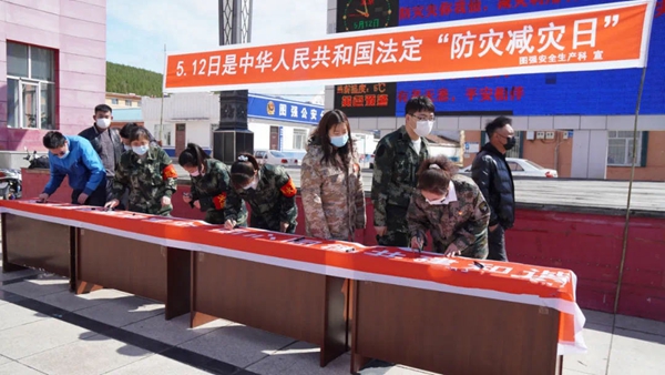 工作人員的耐心講解,讓過往行人紛紛駐足交流“防災減災”知識。通過溝通交流,大家紛紛表示將會把這些知識向家人、朋友、親戚宣傳,讓更多的人了解和掌握相關“防災減災”知識,并鄭重地在宣傳橫幅上簽上自己的名字。