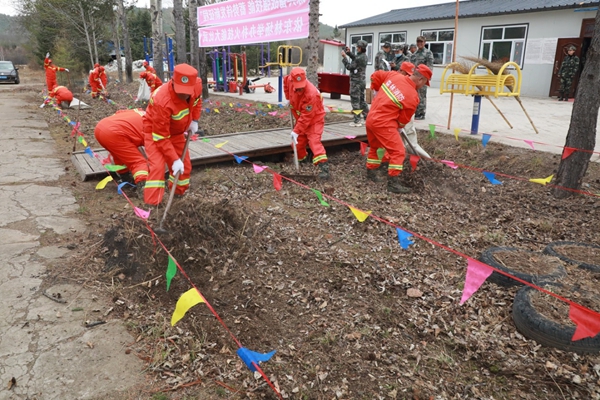 開(kāi)設(shè)防火隔離帶,是阻擋火源的有效方法。依東林場(chǎng)將環(huán)境衛(wèi)生整治與防火科目結(jié)合起來(lái),在門前擺下擂臺(tái),拉出橫線設(shè)立分區(qū),六組隊(duì)員進(jìn)入場(chǎng)地爭(zhēng)分奪秒、互不相讓,有的耙、有的裝,一會(huì)功夫一條干凈、規(guī)范的“隔離帶”出現(xiàn)在眼前。