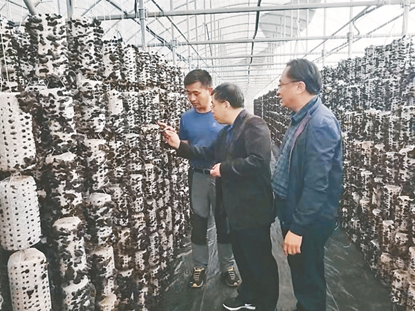 科研人員對黑木耳規(guī)?;a(chǎn)進行技術(shù)指導(dǎo)。