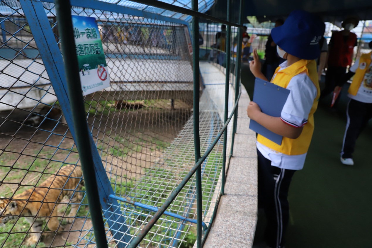在東北虎林園工作人員的帶領(lǐng)下,小朋友們穿著統(tǒng)一的黃馬甲,手持研學(xué)游活動(dòng)記錄單,充滿期待地走進(jìn)東北虎林園,近距離觀察動(dòng)物們的外貌特征、動(dòng)作特點(diǎn),細(xì)致聆聽工作人員的講解,認(rèn)真記錄自己所看到的每一個(gè)細(xì)節(jié)、聽到的每一個(gè)知識(shí),還有愛畫畫的小朋友畫下了自己親眼所見的老虎憨態(tài)可掬的樣子。
