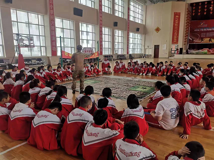 5月30日早8:00,初一學年100名學生分成四組開始了為期一天的拓展訓練。拓展訓練前,教練首先告訴同學們:軍人以服從紀律為天職,作為中國人應懷著一顆感恩之心回報社會、建設祖國。