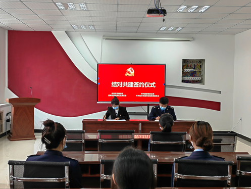 阿木爾林業(yè)局紅旗林場“阿08”瞭望塔瞭望員鄭巖(左一)向紅旗林場黨員干部介紹塔周圍山川河流道路情況(王力 攝)