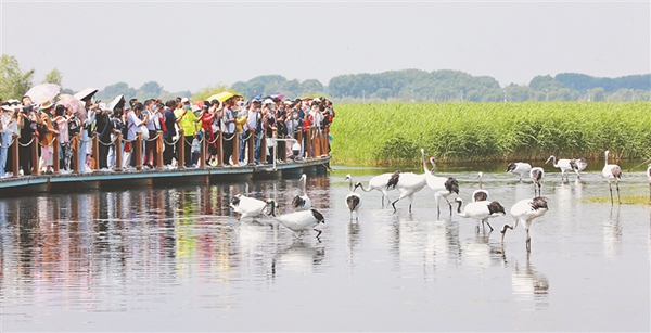 15日,第二個(gè)“鄉(xiāng)約扎龍·情滿鶴城”——“扎龍齊齊哈爾市民日”全面啟動(dòng)。當(dāng)日天藍(lán)水碧,徐徐微風(fēng)拂過,眾多游客來(lái)到國(guó)際重要濕地之一的扎龍濕地感受濕地風(fēng)光的壯闊之美,欣賞鶴舞云翔的自然之美。馬麗娟 宋燕軍 黑龍江日?qǐng)?bào)全媒體記者 姚建平攝