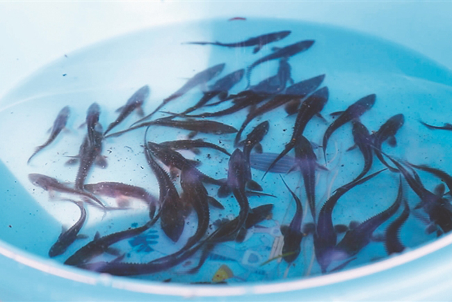 施氏鱘魚苗。 張瑤 黑龍江日?qǐng)?bào)記者 劉劍攝
