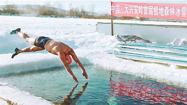 一躍而起,縱身入冰河,劈波斬浪,挑戰(zhàn)極限自我。14日,大興安嶺加格達(dá)奇區(qū)甘河冬泳基地,北極熊冬泳隊(duì)的隊(duì)員們進(jìn)行了一場(chǎng)精彩至極的冬泳表演賽。