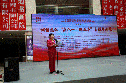 省直機(jī)關(guān)工委行業(yè)協(xié)會商會黨建工作部部長、全省性社會組織黨委專職副書記秦曉明致辭。他表示,相信通過這次活動的舉辦,將進(jìn)一步激勵軍民同心,增強(qiáng)情感認(rèn)同,深化同呼吸、共命運、心連心的軍民魚水情,營造擁軍優(yōu)屬、擁政愛民的濃厚社會氛圍。同時,以亞冬會為媒,以書畫展為平臺,充分展示文明尚禮、熱情自信的冰城風(fēng)貌,領(lǐng)略龍江深厚的冰雪運動底蘊(yùn)。