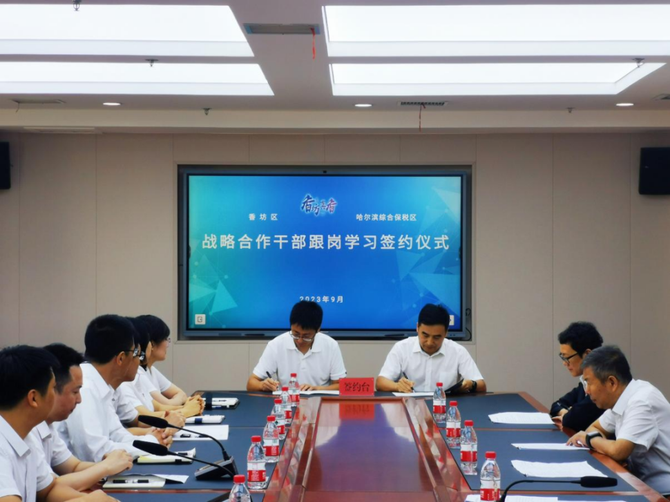 黑龍江經(jīng)濟網(wǎng)訊(記者商祺)9月8日上午,哈爾濱綜合保稅區(qū)管委會與香坊區(qū)委組織部舉行戰(zhàn)略合作協(xié)議簽約儀式暨干部跟崗學習對接會。哈爾濱綜保區(qū)管委會常務(wù)副主任、黨工委副書記邸凱與香坊區(qū)委組織部部長楊鐵巖出席會議并代表雙方簽約。相關(guān)單位主要領(lǐng)導及10余名跟崗學習干部參加會議。