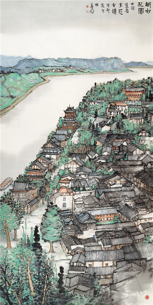 林容生 鄉(xiāng)村紀(jì)實(shí)·宜賓李莊古鎮(zhèn) 234cm×123cm 國畫