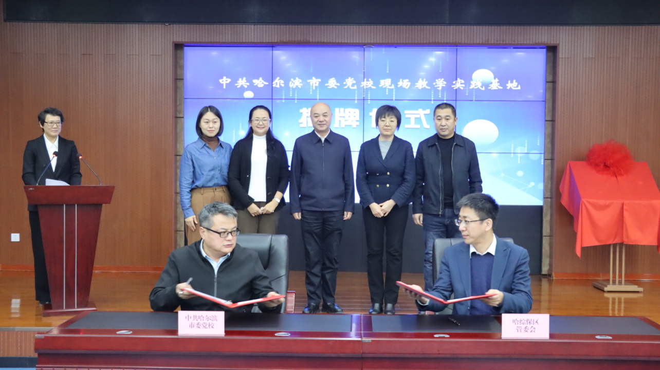 黑龍江經(jīng)濟(jì)網(wǎng)訊(記者商祺)12月13日,哈爾濱綜合保稅區(qū)與哈爾濱市委黨校舉行現(xiàn)場教學(xué)實(shí)踐基地揭牌儀式,哈爾濱市政府副秘書長、兩區(qū)一體化辦公室主任、哈爾濱綜合保稅區(qū)管理委員會主任尹承云與中共哈爾濱市委黨校常務(wù)副校長、市行政學(xué)院院長孫蕊共同為現(xiàn)場教學(xué)實(shí)踐基地揭牌。哈爾濱市委黨校副校長孫昭與哈爾濱綜合保稅區(qū)管理委員會常務(wù)副主任邸凱代表雙方簽署合作協(xié)議。