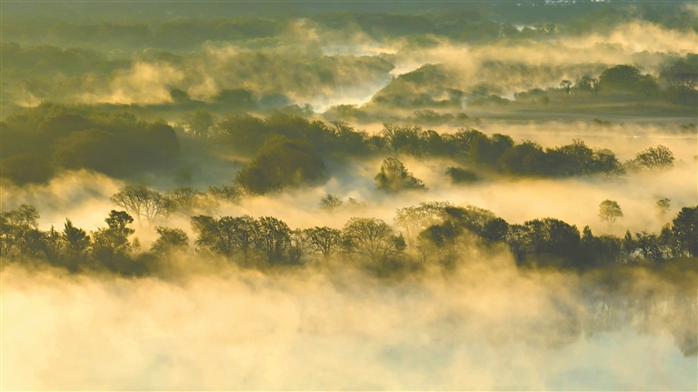 烏蘇里江饒河段晨霧中樹影迷離。戰(zhàn)志遠(yuǎn)攝