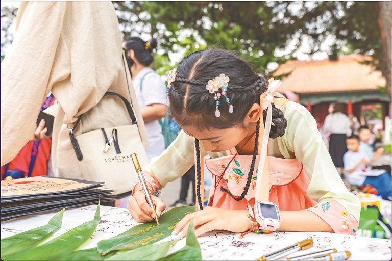 本報(bào)10日訊(記者 董云平)對(duì)古詩摘“高粽”香囊、體驗(yàn)古風(fēng)花鈿、沐蘭湯凈手、粽葉寫祝福、解鎖端午限量印章、領(lǐng)取端午彩絲……10日,省民族博物館融合傳統(tǒng)習(xí)俗與現(xiàn)代創(chuàng)意,開啟沉浸式“端午文廟行:粽情畫意 古韻新體驗(yàn)”,多彩傳統(tǒng)民俗、非遺文化將活動(dòng)現(xiàn)場(chǎng)節(jié)日氛圍感拉滿,帶給大家端午出游“新”體驗(yàn)。
